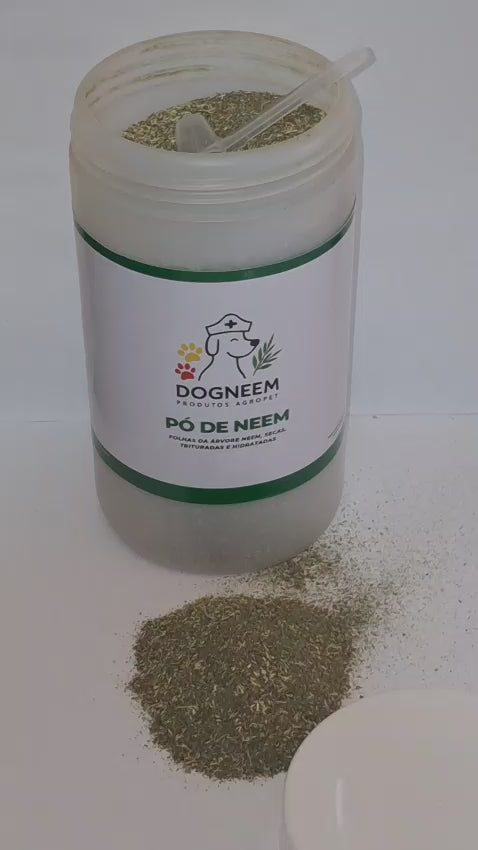 O pó de Neem (Azadirachta indica) misturado à alimentação atua como um tratamento fitoterápico eficaz no controle das pragas e parasitas comuns, como pulgas, carrapatos, vermes, ácaros, moscas, dentre outros 400 tipos de insetos.O pó de Neem começa a atuar desde a boca até a formação do bolo fecal no animal. Na boca, a ação bactericida do neem faz com que as placas bacterianas e tártaros comecem a ser tratados.